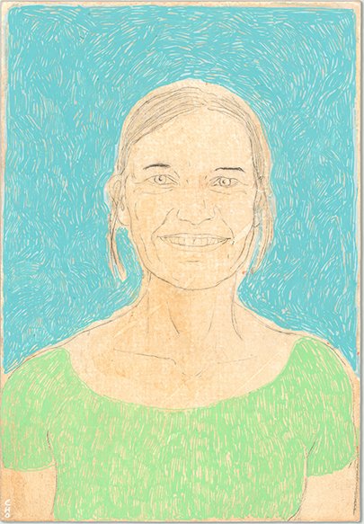 Sans titre (Femme, sourire, fond bleu et TS vert – original)